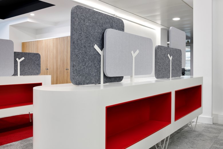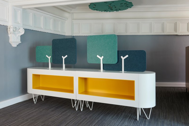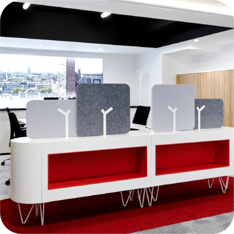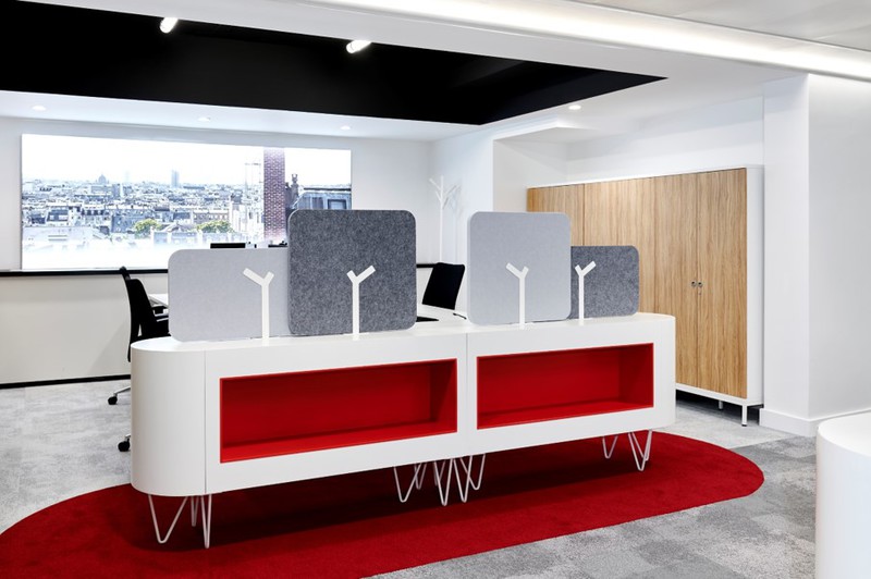 La partie supérieur peut accueillir des panneaux acoustiques ou bien une accessoirisation spécifique.