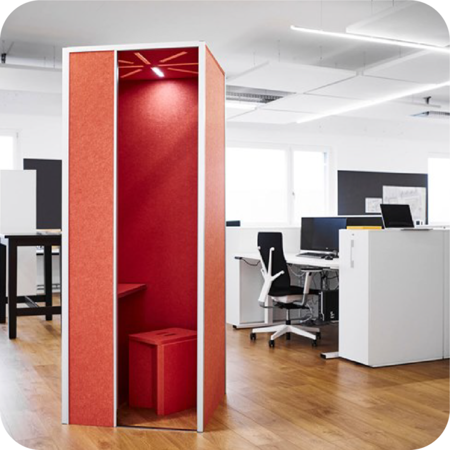 EchoBox® vous permet de passer vos appels téléphoniques ou vos visioconférences en toute intimité et sans déranger vos collègues.
