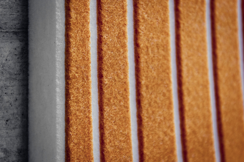L'absorbeur spécial EchoCoustic ® est le matériau idéal pour une fixation directe aux murs ou aux plafonds sans espace ni sous-structure. Avec ses trois couches, il atteint un excellent degré d'absorption de aw 0,80 et NRC 0,85 avec une épaisseur de seulement 25 mm. L'absorbeur en PET recyclé est extrêmement robuste et convient pour un nettoyage et une désinfection réguliers. L'installation est rapide et facile avec l' adhésif en aérosol.