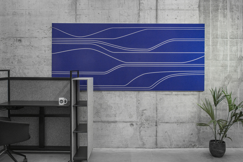 EchoCoustic ACCENT® aux découpes en V laisse apparaître la couche blanche d'absorption haute performance.