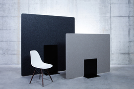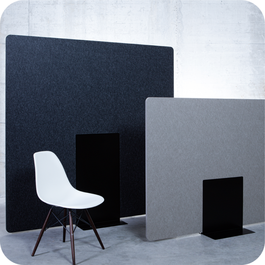 Le panneau acoustique sans cadre d’EchoCove® STAND est un séparateur de pièce autonome qui peut être utilisé dans des espaces ouverts ou entre des espaces de travail. Il est maintenu par une base métallique robuste et est disponible en quatre tailles standard allant jusqu’à 180cm x 180cm. L’installation est rapide et sans outil.