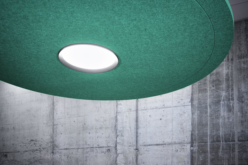 Pour un confort de travail maximal, EchoLED® SITAS dispose d'un champ lumineux intégré dans un panneau acoustique suspendu performant. Le luminaire encastré équipé d'un diffuseur lumineux microprismatique se trouve au centre du panneau acoustique. Il est disponible sur mesure dans une large gamme de formes et de tailles.