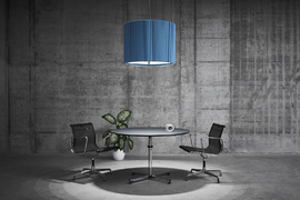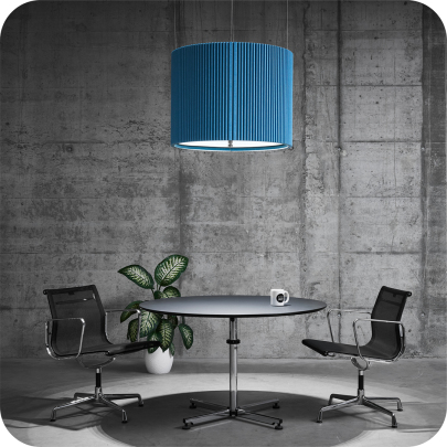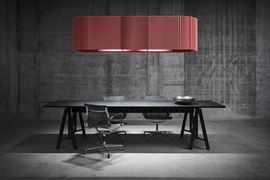 Cette lumière acoustique expressive est disponible en deux tailles et est faite pour les pièces supérieures. Le luminaire suspendu acoustique EchoLED® UMBRA offre une absorption acoustique élevée et constitue une excellente alternative aux voiles acoustiques généralement connues au-dessus des postes de travail et dans les salles de conférence. UMBRA utilise le module de lumière Bartenbach EQ4 qui offre toutes les possibilités de contrôle de la lumière numérique et est livré prêt à brancher. Pour le meilleur confort d’éclairage, la distance idéale entre le plateau de table et l’EchoLED® UMBRA ne doit pas être inférieure à 170cm.