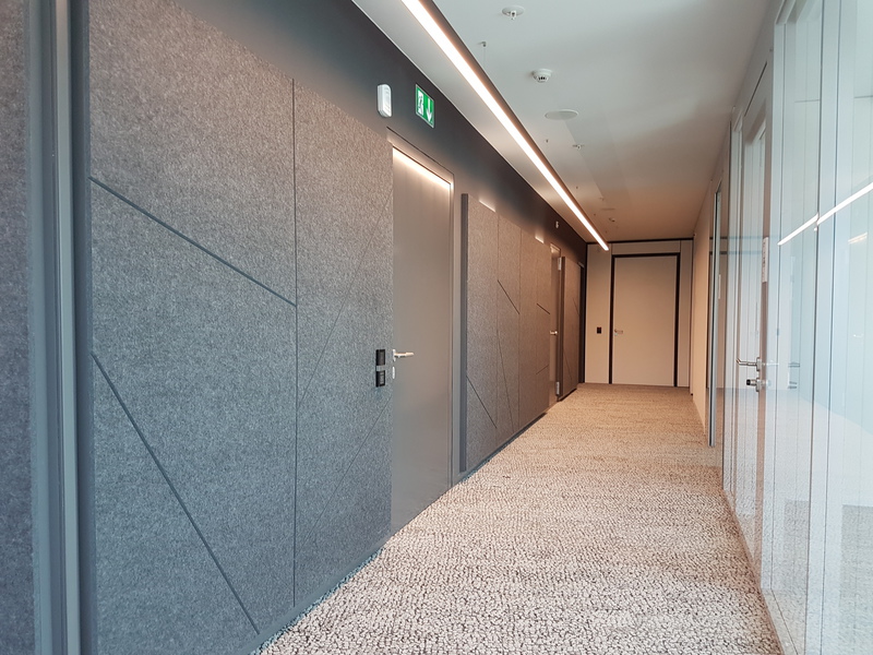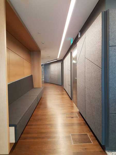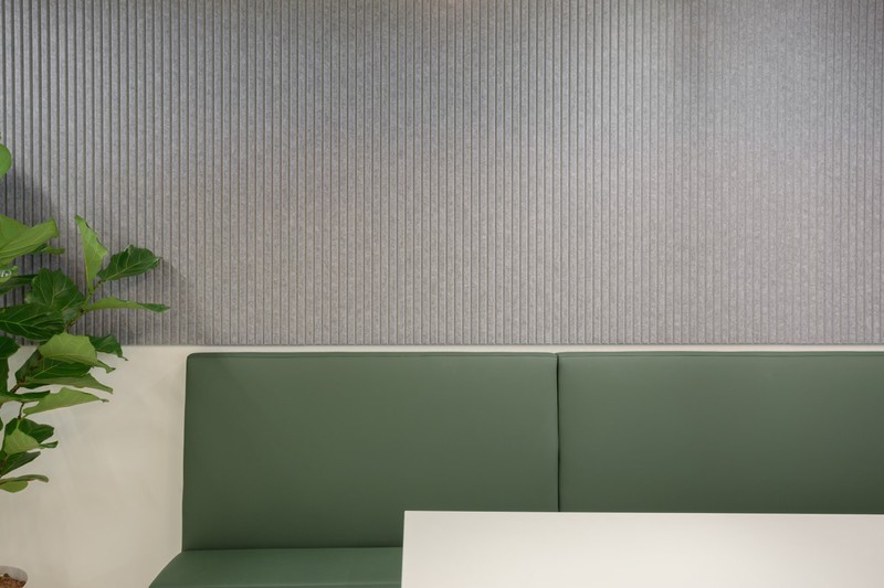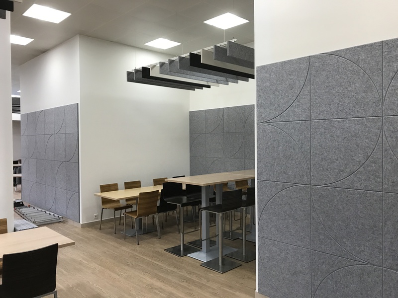 EchoMonoc® convient aux applications murales de grande surface sans joints visibles. Pour améliorer les performances acoustiques, il est recommandé d’utiliser l’option 24mm d’épaisseur. Les absorbeurs ECHOJAZZ en PET recyclé sont extrêmement robustes. L’installation est rapide et facile avec EchoGlue® spray de contact adhésif.