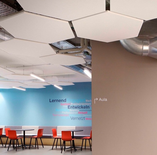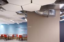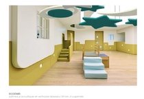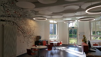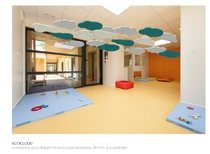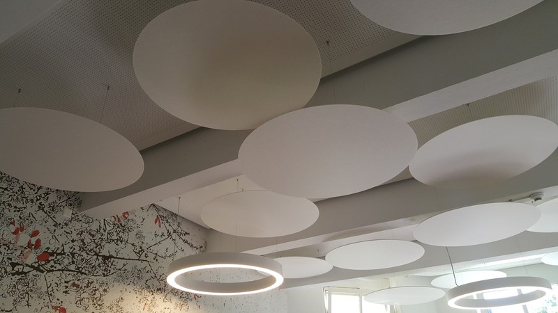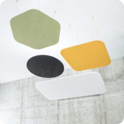 Les suspensions acoustiques sont des éléments clés pour améliorer l’acoustique des Open-spaces et des bureaux fermés. Ces éléments légers peuvent être coupés à n’importe quelle forme, angle ou perforation. EchoSail® est suspendu horizontalement à la structure du plafond, soit fixé à un cadre et fixé par des crochets de sécurité ou avec des câbles de suspension vissés directement dans le panneau.